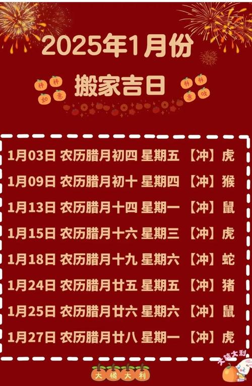 临近春节,此日为王日,百事顺遂、天仓星照命,主财源广进,仓库充实、选择在春节前搬入新家,既能辞旧迎新,又能借助年节的喜庆之气,为新宅增添双重福运,寓意新年新气象,家运蒸蒸日上。