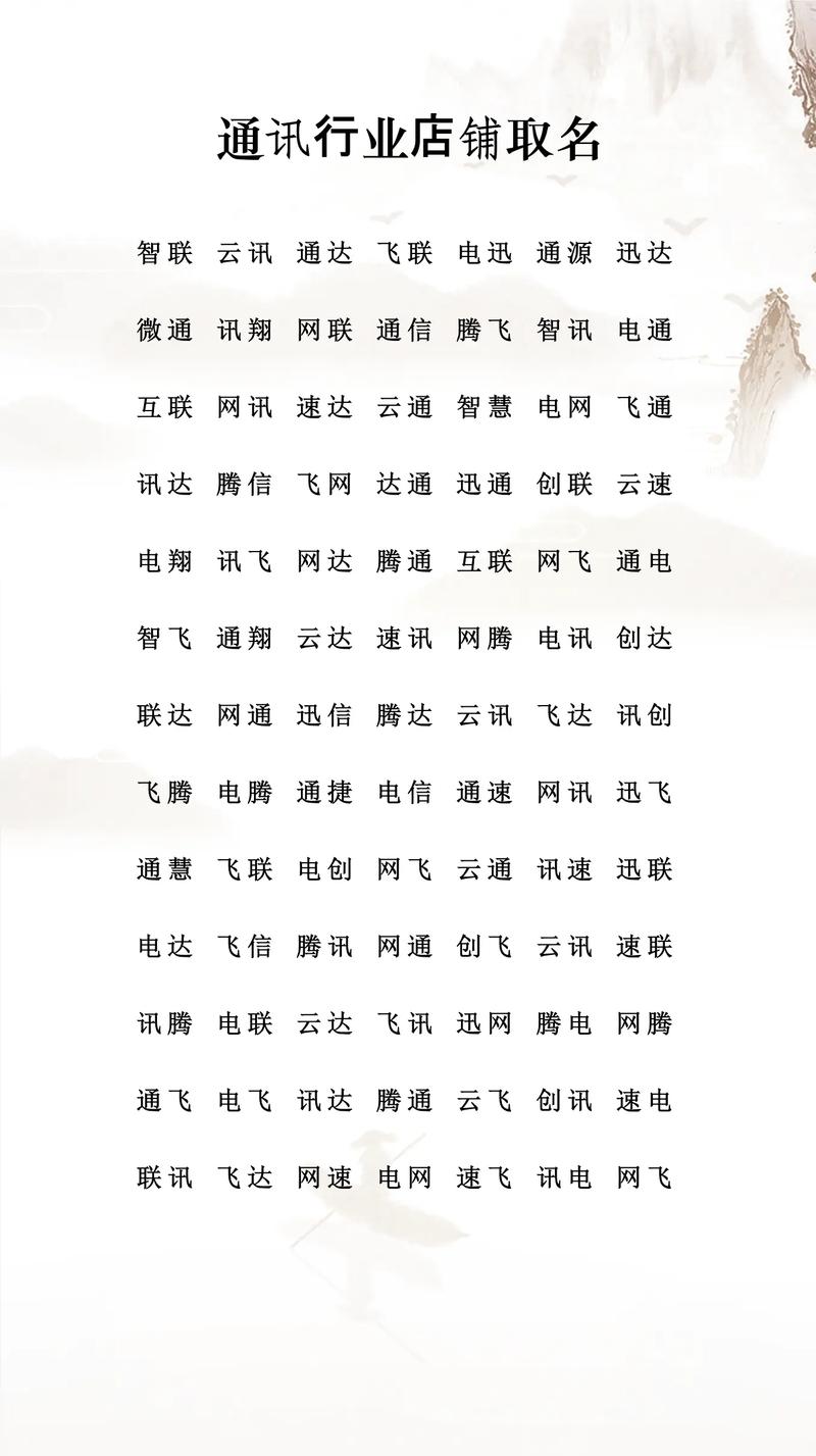 离火运中,速度与连接是核心、通讯行业本质上是信息的传递,是光电的流转、丙午年火气极旺,起名若能顺应天时,则能借势而起;若名字过于阴冷或与流年大势相悖,则易在激烈的市场竞争中被灼伤、名字不仅是一个符号,它是店铺磁场的凝聚点,是吸引客户、留住财气的阵法。
