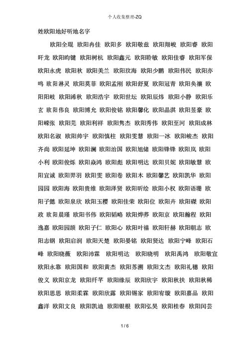 1. 避免叠词:欧阳本身是两个字,后面再加叠词(如欧阳倩倩),会显得过于琐碎,破坏了复姓的平衡感,容易给人一种低幼化的印象。