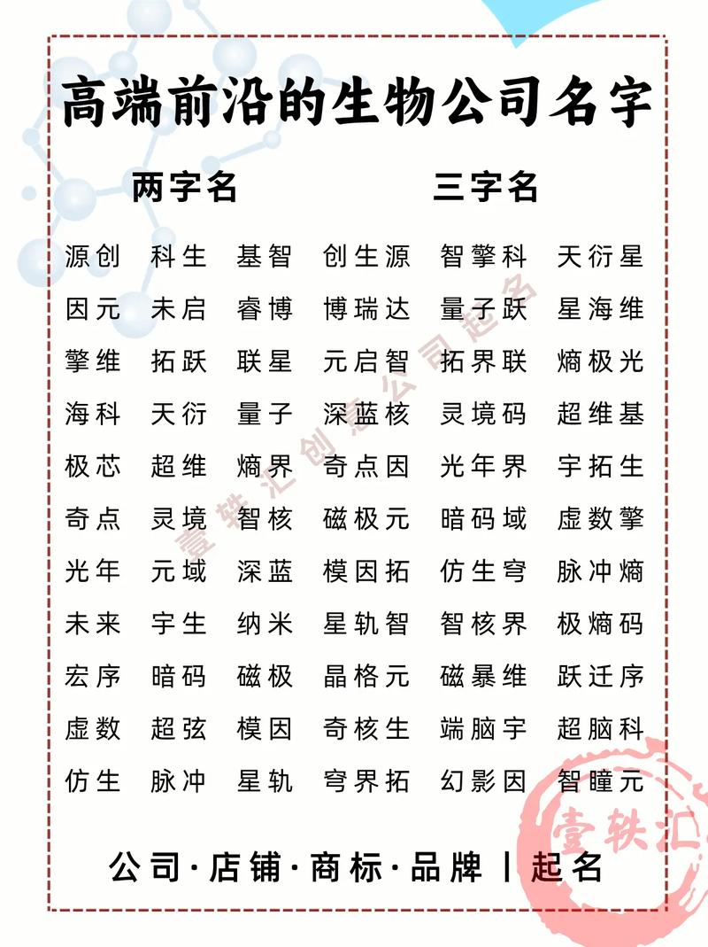 2026年岁次丙午,天干属火,地支属火,纳音为天河水、这一年是火气极旺的“赤马”之年,对于处在时代前沿的生物科技行业而言,既是烈火烹油的爆发期,也是大浪淘沙的转折点、生物科技本质上是一场关于生命奥秘、基因重组与自然规律的深刻对话,在风水学与姓名学的维度里,它跨越了“木”(生命的生发)、“水”(基因的流动)与“金”(精密医疗器械)三个领域、一个能够承载百年基业的生物科技公司名字,必须在2026年这种极端的火性气场中,寻找到水火既济的平衡点。