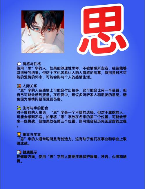 如果名字中“思”字运用得当,孩子在进入青春期(尤其是遇到鼠年、鸡年等冲克年份)时,会表现出超越同龄人的冷静、这种冷静并非冷漠,而是一种“观全局而后动”的智慧。