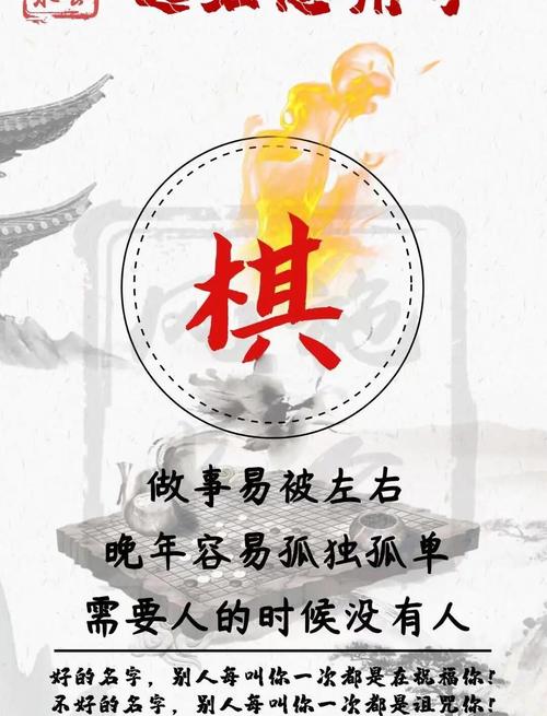 1. 忌“死棋”意象: 取名要活、比如“固棋”,虽然稳固,但缺少了灵动,易使思维僵化、应选“弈、通、灵、势”等带有动态感的字。