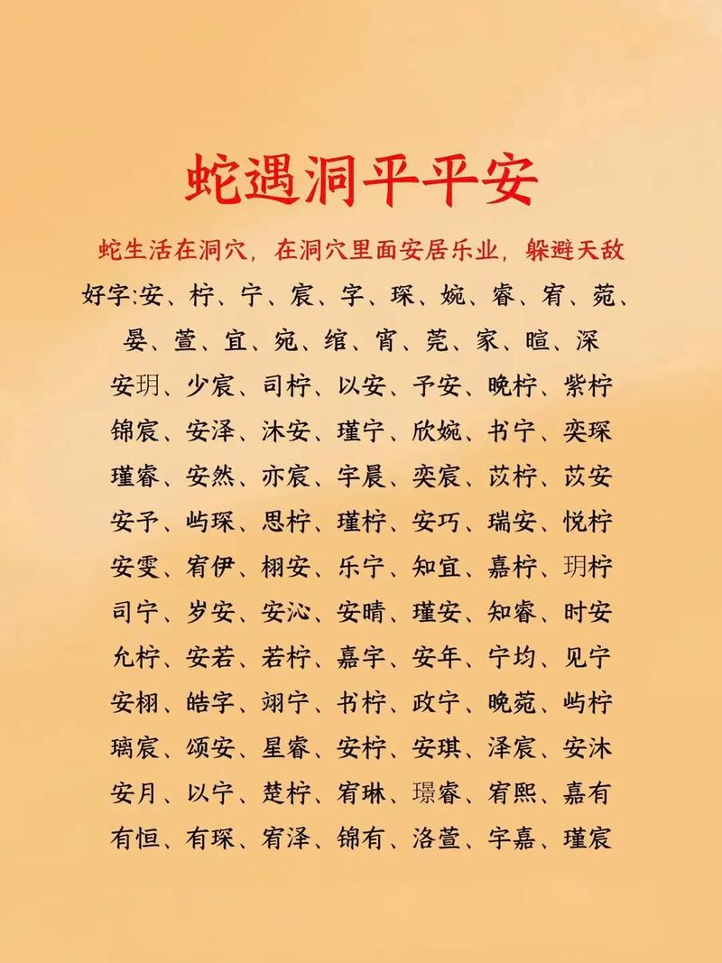 给蛇宝宝取名,讲究的是“藏、升、足、安”四个字、蛇为小龙,喜隐蔽之处,喜升华成龙,喜食肉,喜得栖息之所、要避开刑冲破害,选出最契合灵蛇之气的汉字。