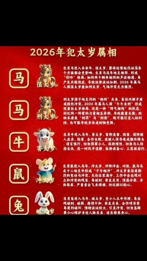 要强调的是,犯太岁只是一种磁场的影响,并非不可改变的宿命、人有主观能动性,通过心态的调整、环境的优化、行为的克制,完全可以把负面影响降到最低,甚至在逆境中开出灿烂的花朵、2026年,丙午之年,红马奔腾、愿每一个犯太岁的生肖,都能驭马而行,跨越重重障碍,迎来属于自己的辉煌。