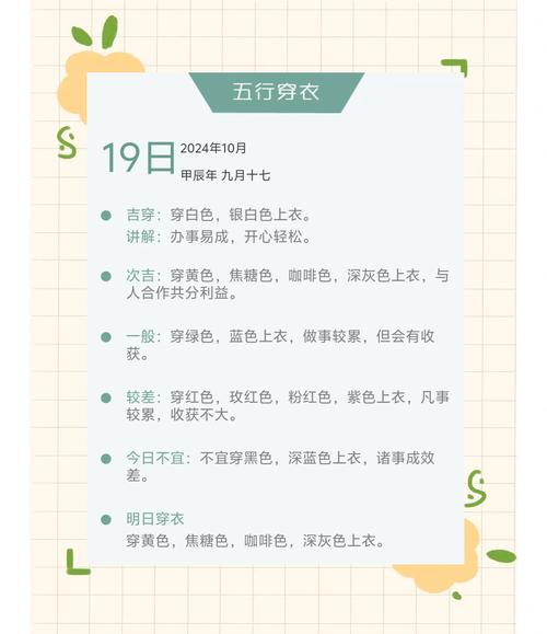 在这一天穿着大面积的黑色或深蓝色,可能会感觉到阻力重重,原本计划好的事情容易出现突发状况、这种五行上的冲克体现在生活中,往往是身体感到疲惫,或者在出行时遇到交通堵塞、电子设备损坏等令人烦躁的小插曲、为了保持磁场的平稳,这一天应暂且将水色系的衣服收回衣橱。