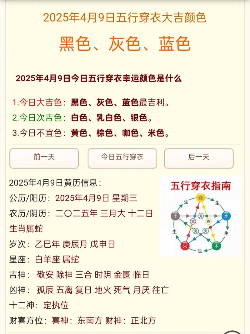 戊己土日: 这一天财运较好,因为火生土、建议穿金色或白色,直接催旺财源。