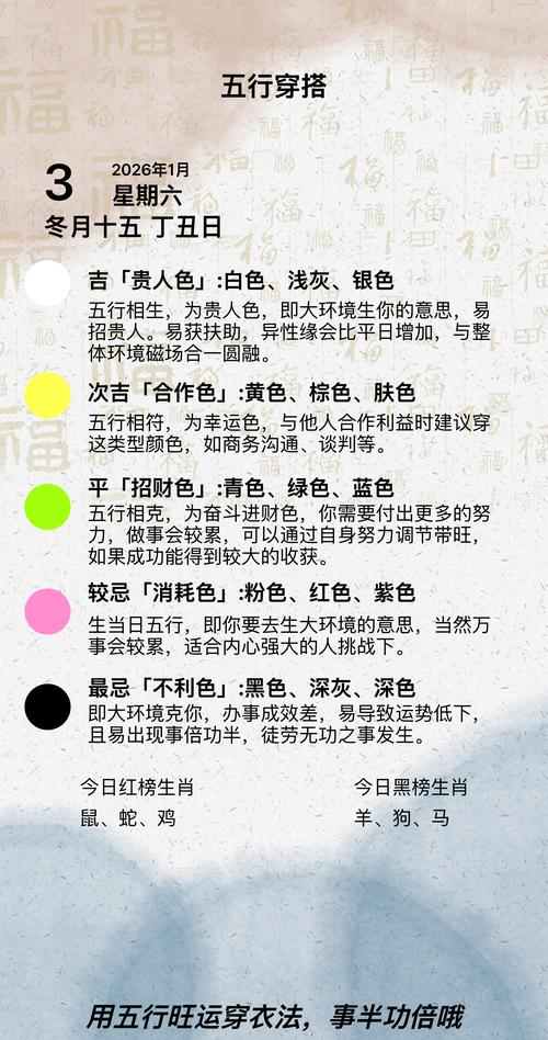 在这种剧烈的五行波动下,日常穿着不再仅仅是御寒,更是调节周身磁场、平衡流年与流月冲突的关键手段、穿对颜色、穿对材质,能起到化煞、增运、安神的作用。
