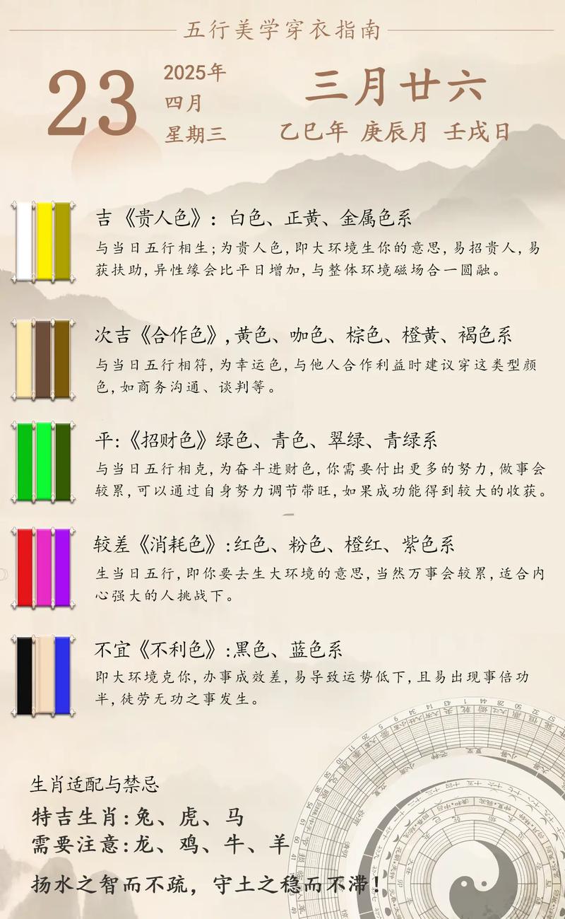 在未来的365天里,每逢4日,对照此表,审视当下的气场、不仅仅是为了好运,更是为了在忙碌的世间,找寻一份与天地同频的宁静、五行之色,在于变通,在于均衡,在于那一份恰到好处的和谐。