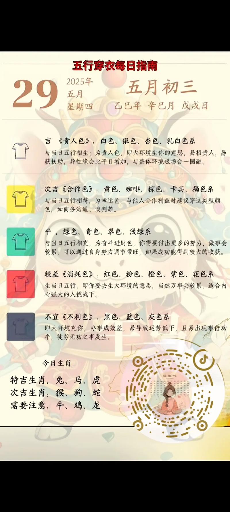 十二生肖今日穿衣指南(结合五行微调)