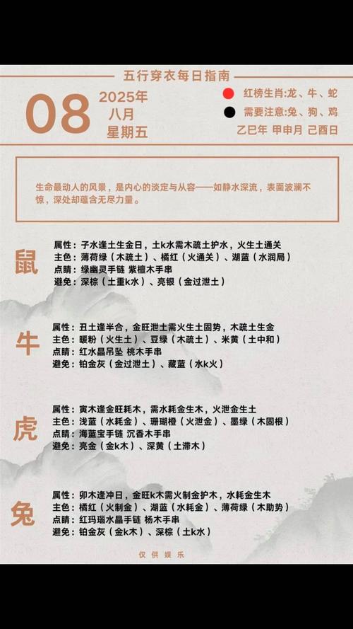 每日出门前,观其干支,察其五行、穿衣不仅是为了遮羞与保暖,更是一种无声的咒语,一种色相的布阵、通过颜色的深浅搭配,我们在丙午年的滚滚热浪中,人为地营造出一片清凉地,一份自在场、不求大富大贵于一夕之间,但求每日气场平和,进退有据、这便是五行穿衣在2026年的真实义。