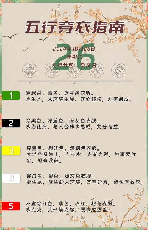 需注意,水色在这一天是被克制的、穿水色意味着你要付出更多的精力去掌控局面、如果感到体质虚弱或精神疲惫,水色可作为局部点缀,不宜大面积铺陈。