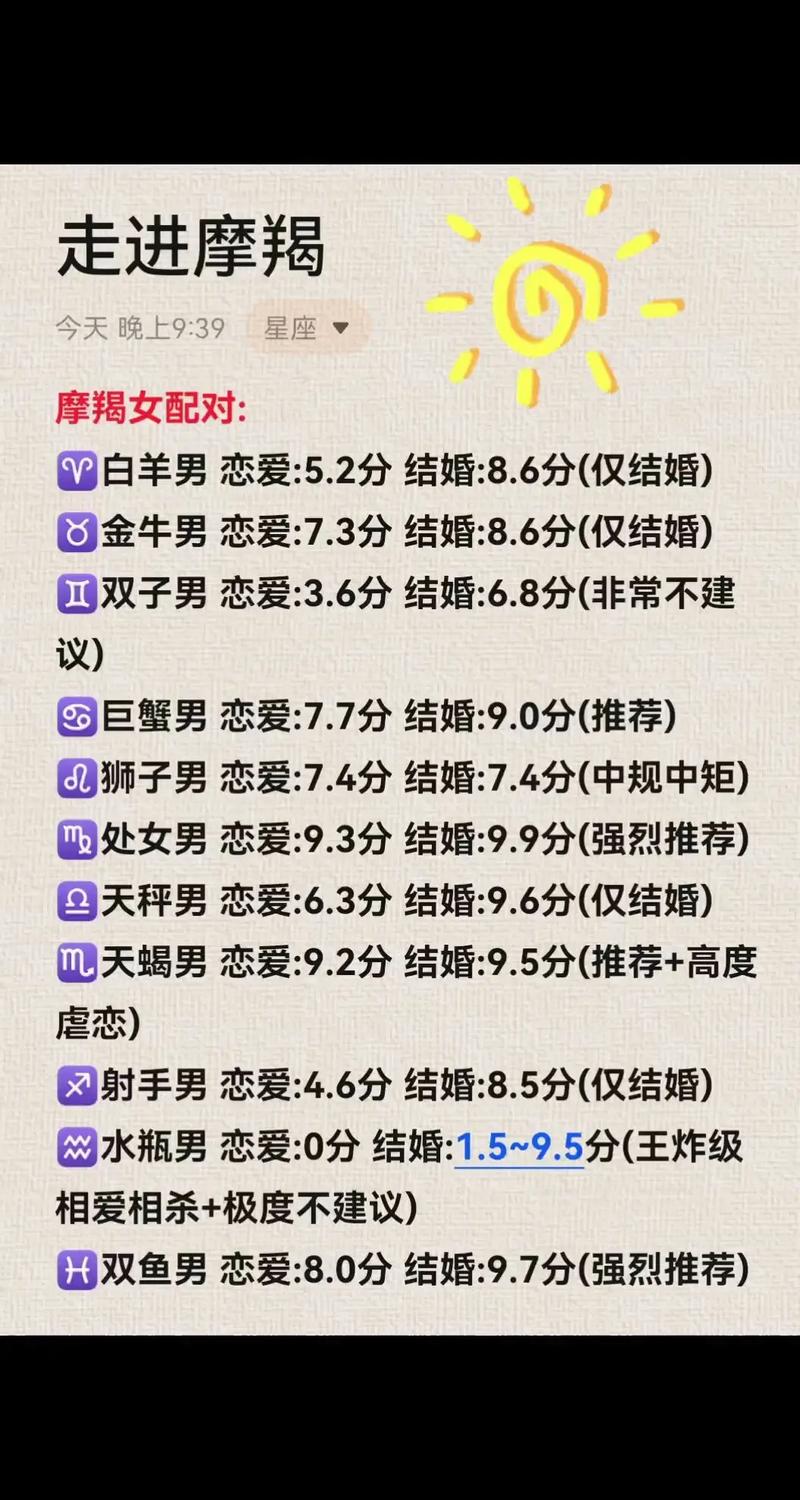 若说金牛座给的是物质层面的安稳,那么处女座给的就是精神层面的高度统一、摩羯座女性对伴侣的要求极高,她们讨厌迟到、讨厌借口、讨厌不切实际的幻想、而处女座男性的逻辑严密、注重细节,几乎完美踩在了摩羯座的审美点上。